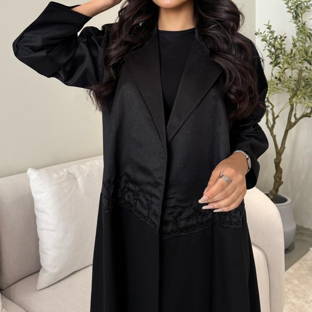 عباية فخمة مصنوعة من قماش كريب راقي مع تفتة جاكار لتوفير الراحة طوال اليوم.
