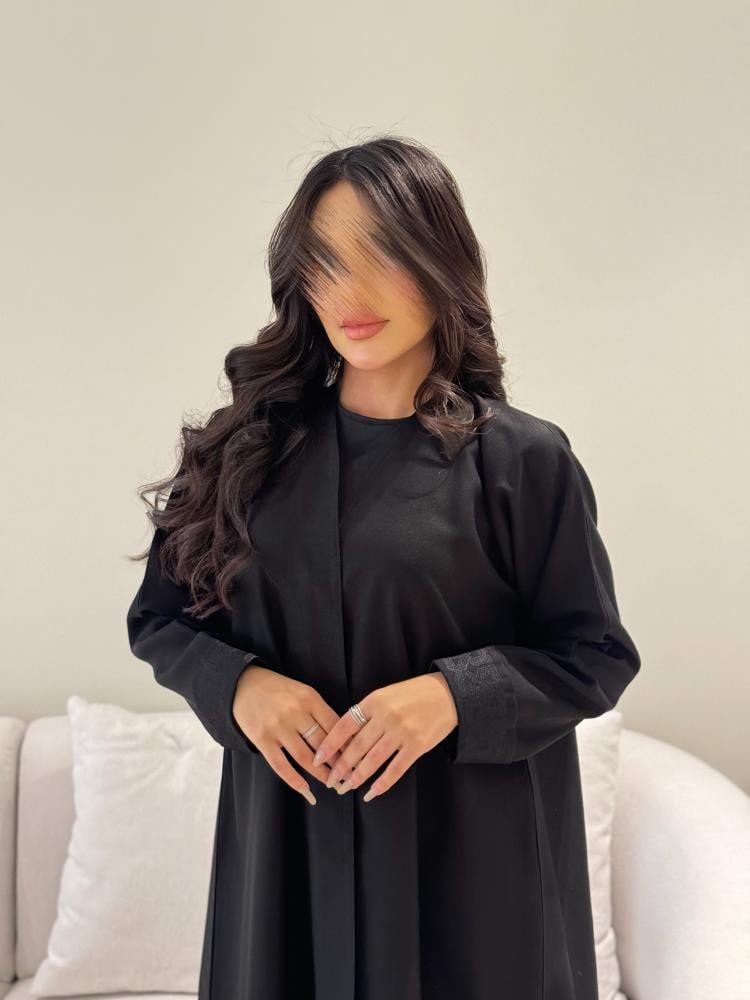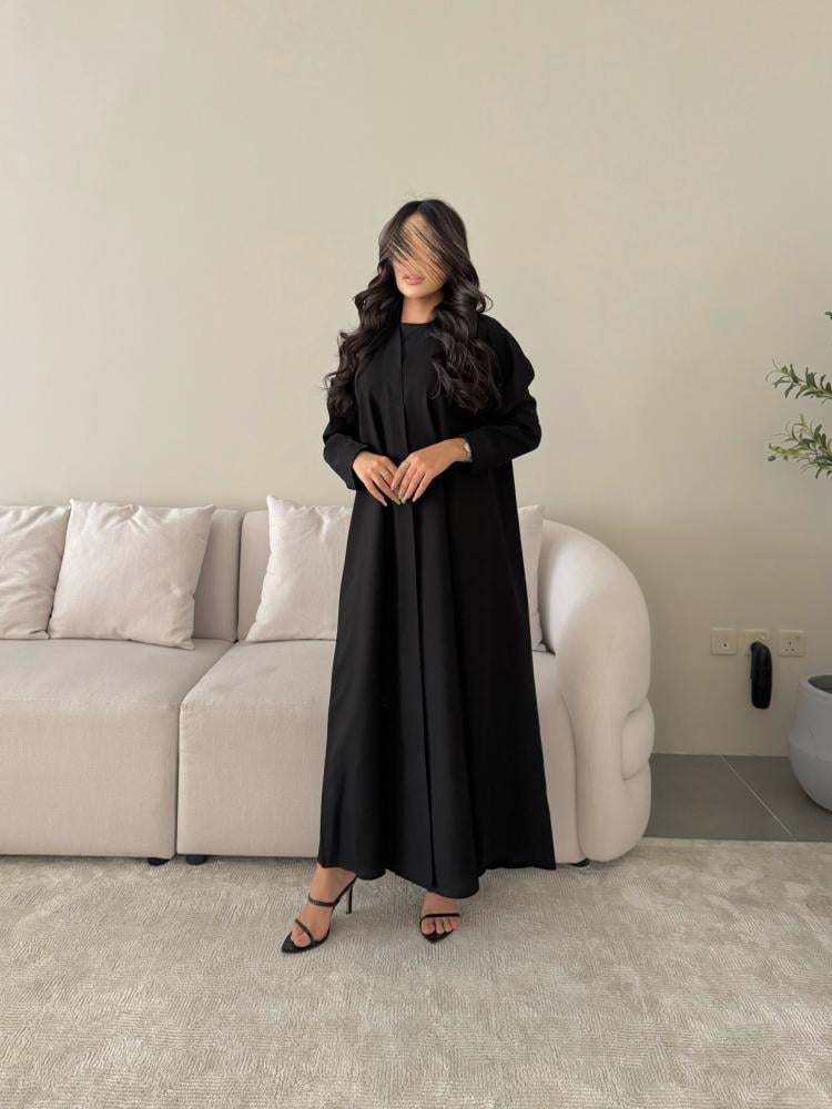 عباية سوداء مصممة للعمل والدوام اليومي مصنوعة من قماش كريب فاخر يضمن الراحة .